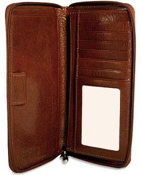 Jack Georges Sienna Collection Leather Zippered Checkbook Travel Wallet, Cognac Feature
