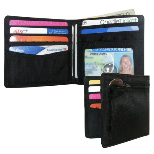 London's big size pound notes pay for breakfast at Brown's...then a quick jaunt over to the continent paying for a late lunch at Les Ombres in Paris with those large euronotes...and then giving some of your spare old tall rupees to your lunch partner who is taking the late afternoon flight to New Delhi. All these bills and most world currencies fit nicely in the same tall, thin bi-fold wallet without folding them over or down. And this thin wallet is almost a perfect 4" by 4" square, which of course, is very cool and something you'll bring up when you are buying drinks later that evening with Madame Bovary at the Ritz who wants to know all about your Big Skinny wallet...and why your bi-fold wallet holds so much yet stays so thin and light...she doesn't think she's met another tall, dark, and handsome wallet like it anywhere else in the world...Holds 30-35 thick plastic cards plus your worldly cash. Now available with a large zippered coin pocket on the outside for easy access to those pieces of metal that matter.Customer Reviews