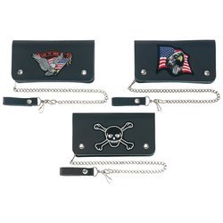 New Diamond Plate 3pc Solid Genuine Leather Biker Wallets With Chains Zippered Compartment Best