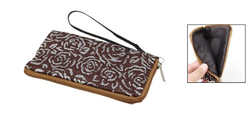 Mobile Phone Glittery Flower Bag Zippered Pouch Wallet w Strap Best